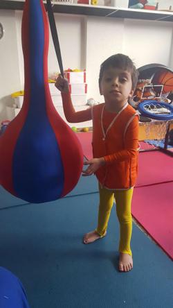 LUCCA - 4 ANOS: Brinca de chutar bola na Spider. Ele usa a sleeve proprio e a legging proprio aumentando sua capacidade de concentração e deixando a terapia mais agradável.